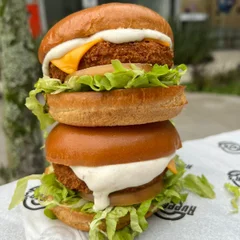 Crocrância garantida: hambúrguer de frango empanado, alface, tomate e a nossa maionese verde.