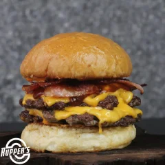 Uma combinação clássica e cheia de sabor. Pão brioche macio, dois smash burgers de 80g, bacon crocante, cheddar derretido e o inconfundível molho especial Rupper’s.