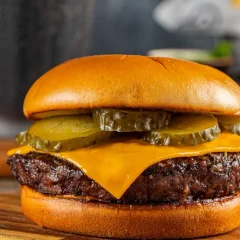Pão brioche, 2 hambúrgueres 120g de carne, queijo cheddar ou mussarela, cebola e picles picadinhos, ketchup e mostarda. Um dos nossos favoritos, simples, mas cheio de sabor.